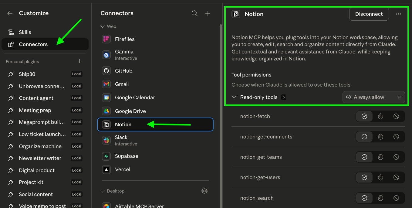 ❝Notion connects to Claude through a special secure connection style, so you don’t need to log into any developer platform.